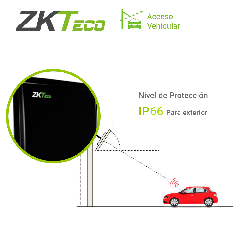 Antena UHF de largo alcance con panel embebido U2000F U2000F son lectoras vehiculares de larga distancia RFID con funciones de control de acceso integradas. Nota 1: La distancia efectiva entre la antena y el tag adherido dentro del parabrisas es de 3.5m Nota 2: Esta antena lee tags de ZKTeco y de terceros, considere esta caracteristica al momento de ofrecer la solución. En comparación con los lectores UHF normales, esta lectora agrega funciones de control de acceso como son; comunicación wiegand de entrada y salida, salida de relevador, conexión a cerraduras eléctricas de terceros, sensor de puerta, botón de salida y comunicación TCP/IP. Las lectoras son compatibles con el software ZKBio CVAccess y ZKBioSecurity módulo de acceso tipo PULL [consulte nuestras licencias con costo]. Han obtenido la certificación de nivel de protección IP66 y son aptos para uso en exteriores. Con una excelente capacidad de identificación de larga distancia, estas lectoras se pueden utilizar en muchas aplicaciones, incluida la gestión vehicular, la gestión de control de acceso y la gestión de acceso peatonal. ¿Cómo añadir la antena U2000F al software ZKBio CVAccess? ---LISTA DE TAGS COMPATIBLES--- https://tecnosinergia.com/catalogo/item/uhf1-tag1.html https://tecnosinergia.com/catalogo/item/ax-tgvh4.html https://tecnosinergia.com/catalogo/item/uhf1-tag3.html https://tecnosinergia.com/catalogo/item/UHFPARKINGTAGX00602027.html https://tecnosinergia.com/catalogo/item/UHF1-TAG9.html Características: Lectura a larga distancia. Nivel de protección IP66. Soporta software de gestión -ZKBio CVAccess Gratuito- ZKBioSecurity módulo de acceso tipo PULL [consulte nuestras licencias con costo]. Funciones de control de acceso.