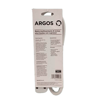 DescripciónComentarios Descripción Aplicación.Ideal para conectar varios aparatos a la vez.Información General.Barra multicontacto 6 tomas aterrizadasPrincipales Características.Uso interior. Color: blanco. 125 V.DocumentosARGOS-9700250-BARRA-MULTICONTACTOS-CON-SUPRESOR-DE-PICOS-FICHA-TECNICA-ESPAÑOL.pdfARGOS-9700250-BARRA-MULTICONTACTOS-CON-SUPRESOR-DE-PICOS-FICHA-TECNICA-INGLES.pdf Comentarios Sé el primero en opinar sobre este artículo No hay comentarios aún