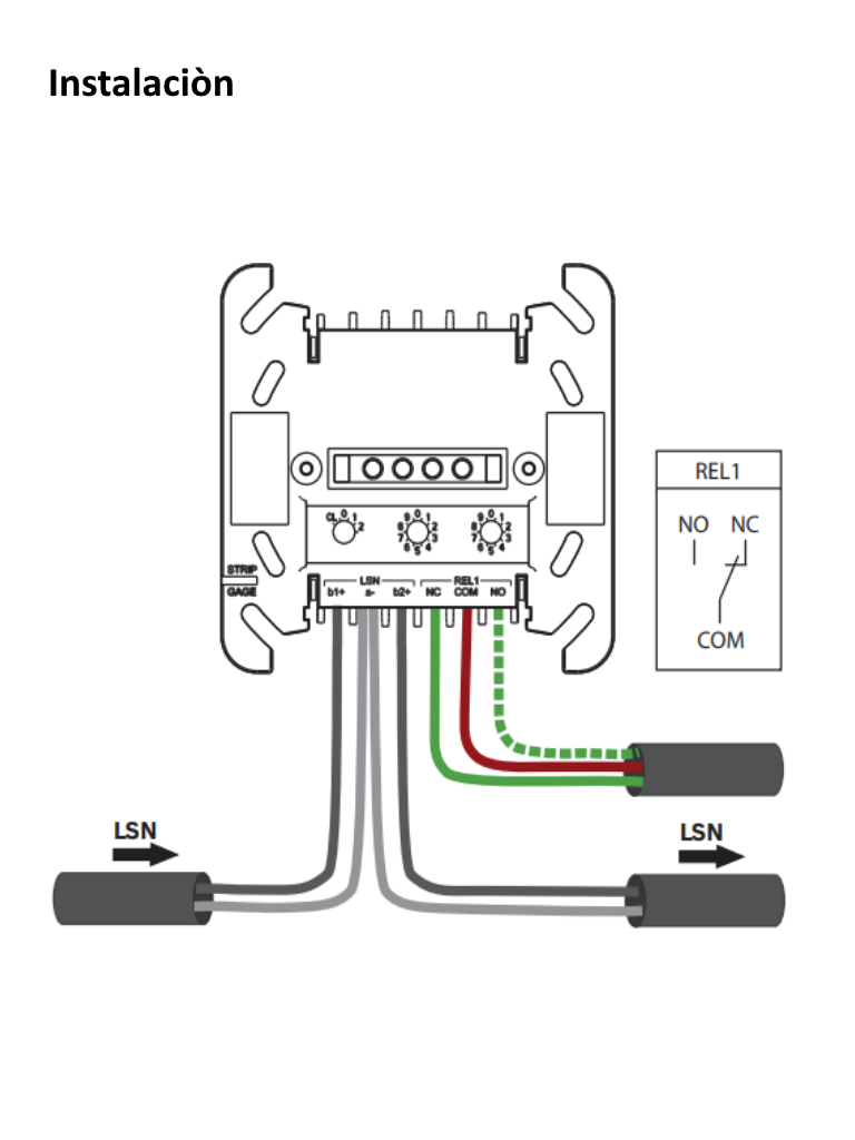 - La conexión LSN se establece mediante los dos cables de la línea LSN.