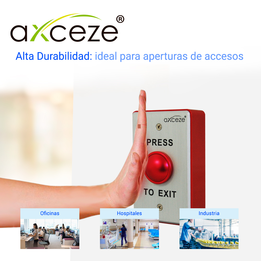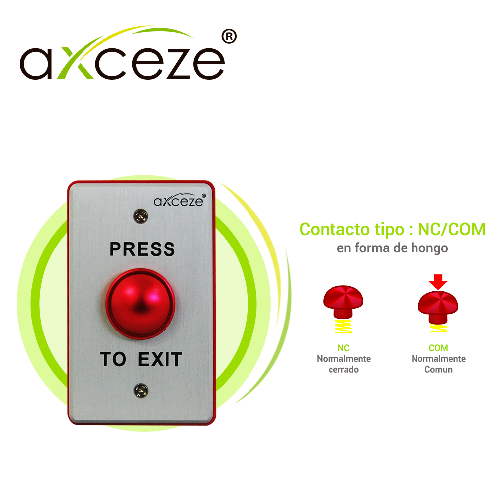 BOTON LIBERADOR PUSH TIPO HONGO AXCEZE AX-B70R EN ALUMINIO CUENTA CON LOS ESTADOS NO, NC