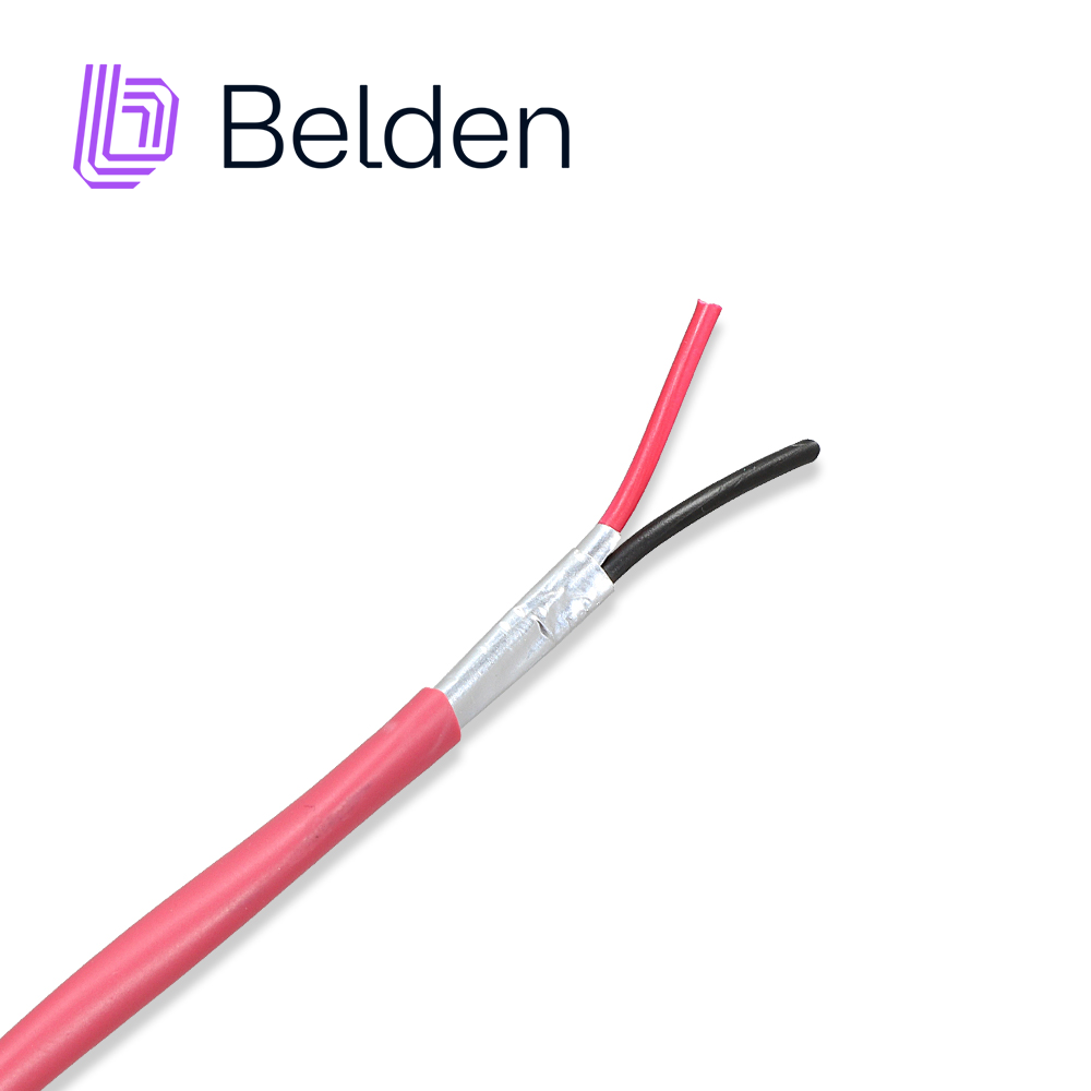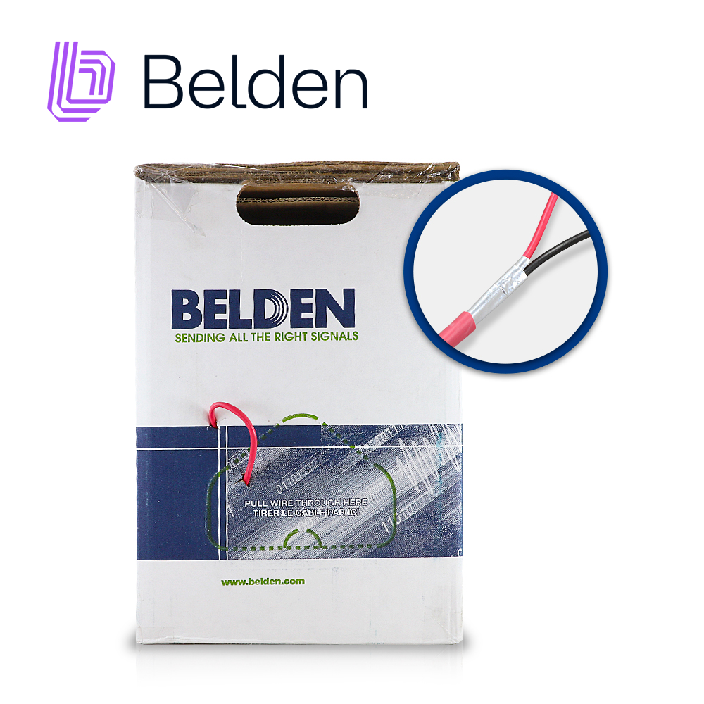 CABLE DE ALARMA CONTRA INCENDIOS BELDEN 5220FL 002A1000 / INTERIOR / ROJO / 2 CONDUCTORES / 16 AWG / SOLIDO / FORRO PVC / CMR - FPLR / BLINDADO / BOBINA EN CAJA / 1,000 PIES 305 METROS