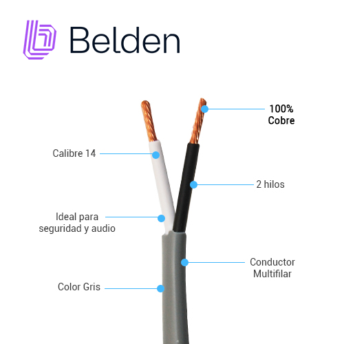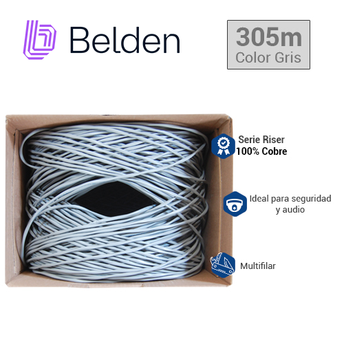 CABLE DE SEGURIDAD Y SONIDO BELDEN 5100UE 008U1000 / INTERIOR / GRIS / 2 CONDUCTORES / 14 AWG / MULTIFILAR / FORRO PVC / CMR - CL3R - FPLR / EN CAJA / 1,000 PIES 305 METROS