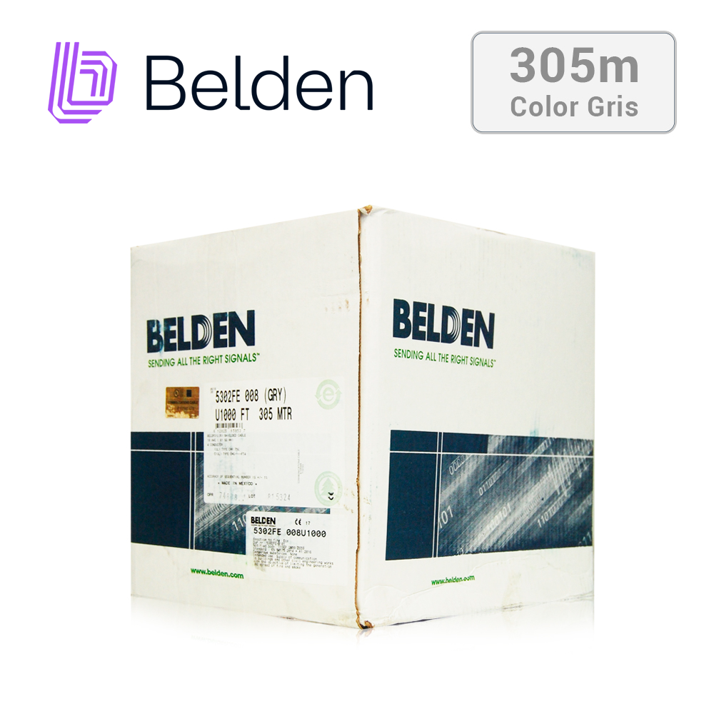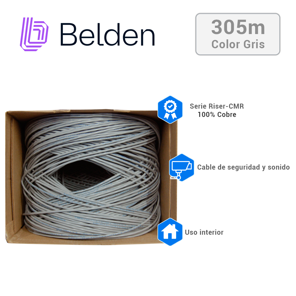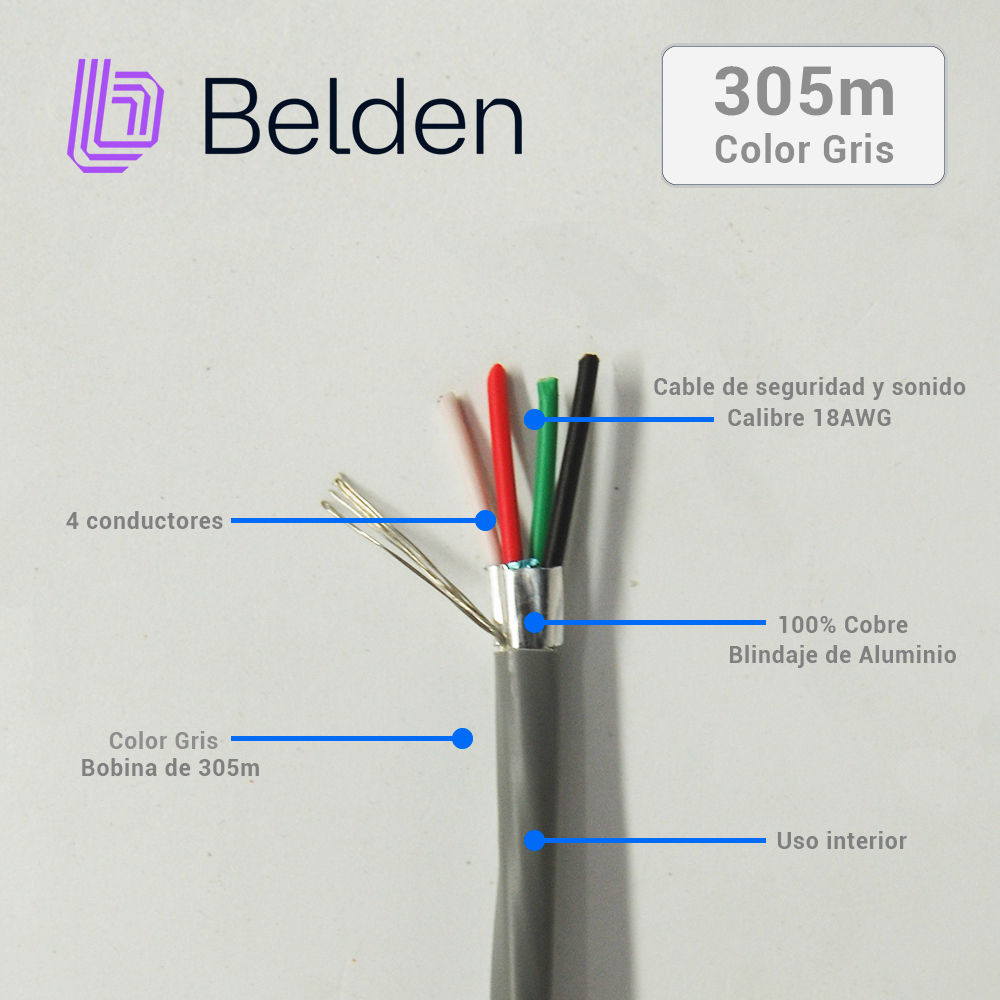 CABLE DE SEGURIDAD Y SONIDO BELDEN 5302FE 008U1000 / INTERIOR / GRIS / 4 CONDUCTORES / 18 AWG / MULTIFILAR / FORRO PVC / CMR / BLINDADO / EN CAJA / 1,000 PIES 305 METROS