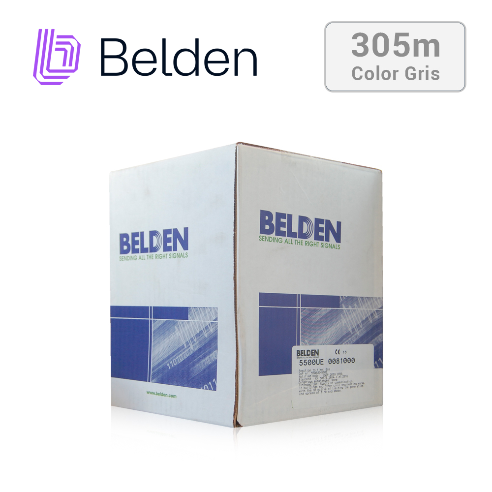 5500UE 0081000 BELDEN Cable de audio comercial y de seguridad, Riser-CMR, conductores de cobre 2-22 AWG, cubierta de PVC. Conductor calibre 22 AWG Tipo Multifilar 100% cobre Numero de conductores 2 Máxima tensión de tracción recomendada: 18.200 lbs. Uso interior Color Gris 1000 ft o 305 Metros