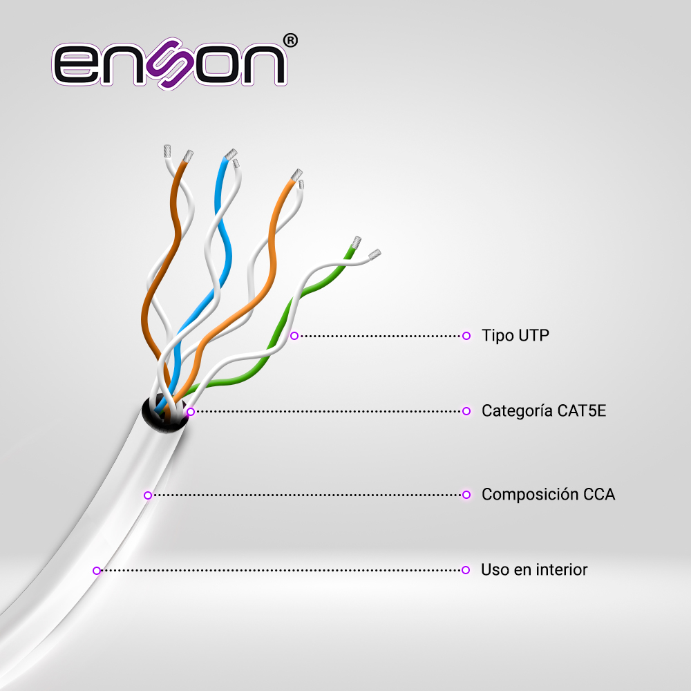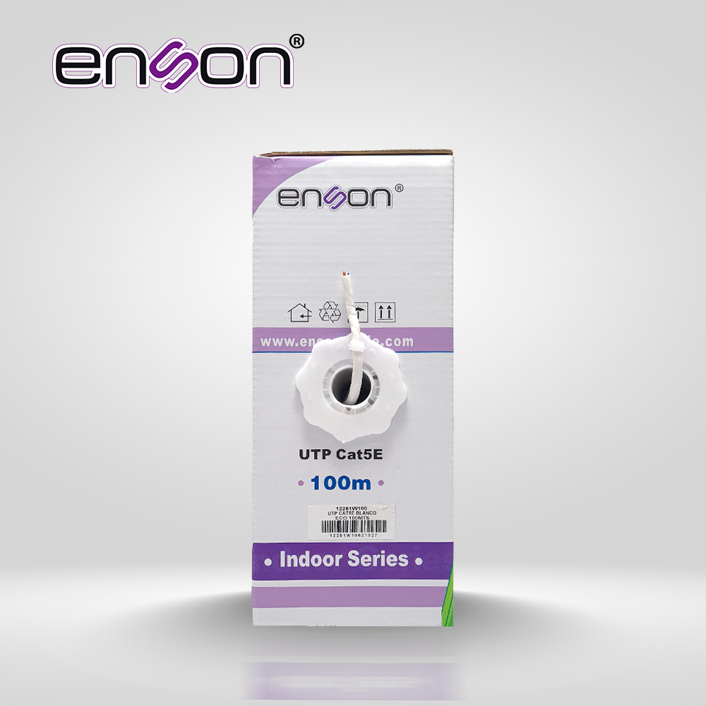DescripciónComentarios Descripción CABLE UTP CAT5E ENSON 12251W100 SERIE ECO CAL 24AWG CCA BOBINA 100MTS PVC COLOR BLANCO USO INTERIOR DocumentosFicha técnica Comentarios Sé el primero en opinar sobre este artículo No hay comentarios aún