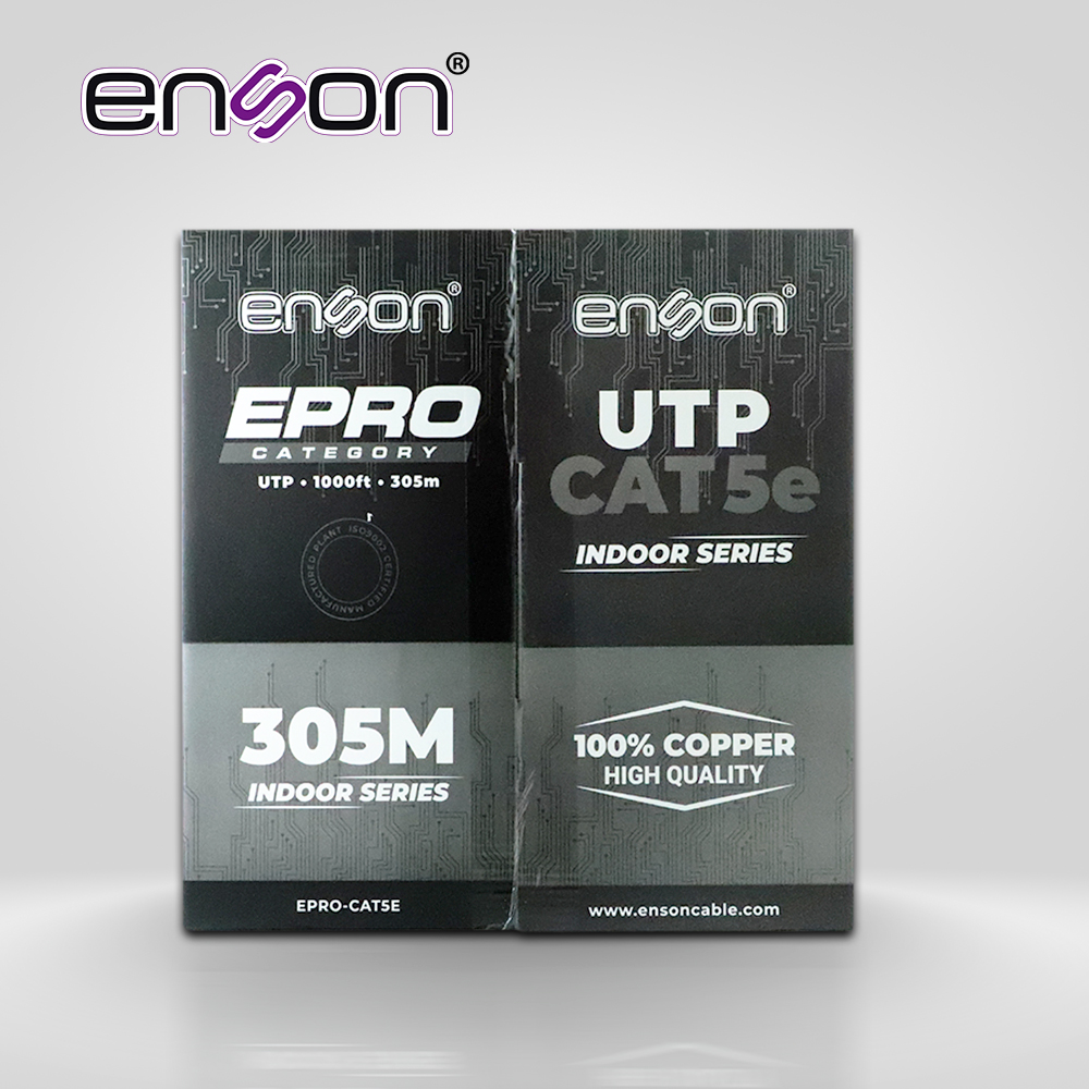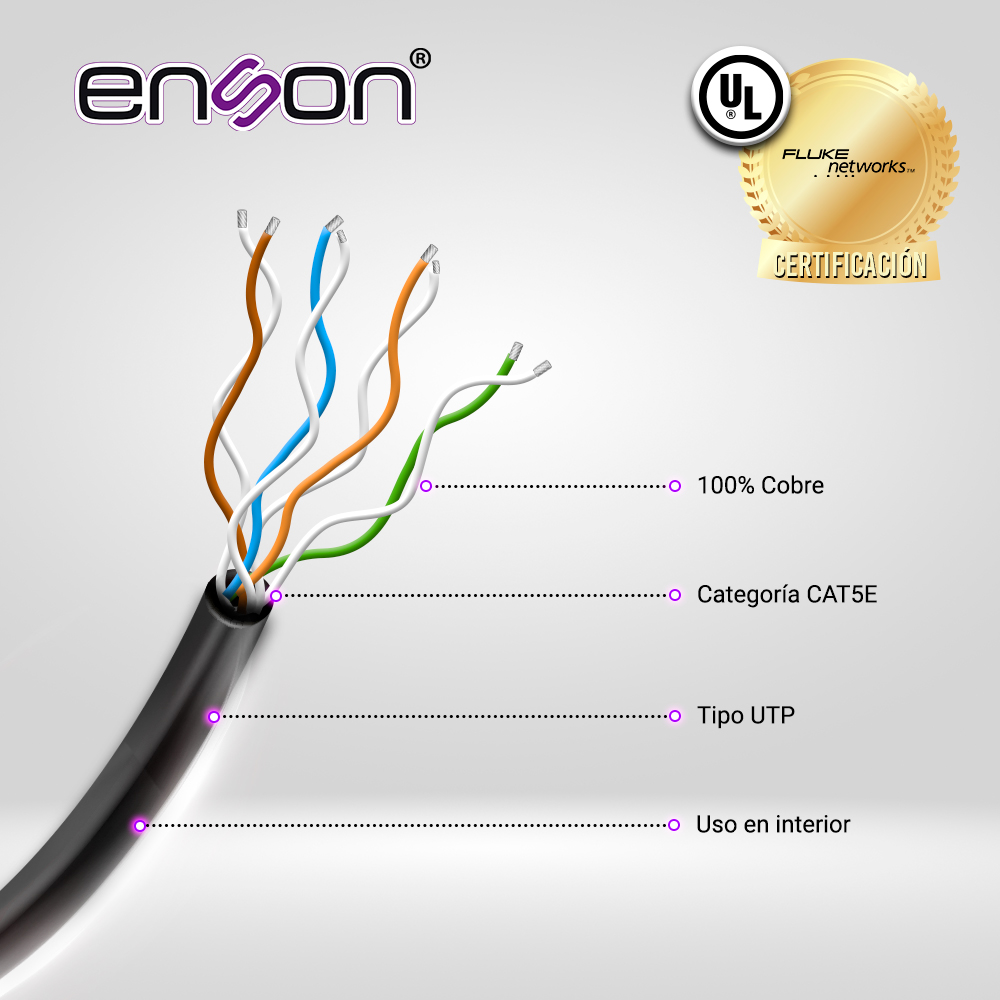 CABLE UTP CAT5E ENSON EPRO-CAT5E FORRO COLOR NEGRO PVC CM 4 PARES CALIBRE 24 AWG 100 CIENTO COBRE USO INTERIOR BOBINA 1000 PIES 305 METROS (CERTIFICACION UL)