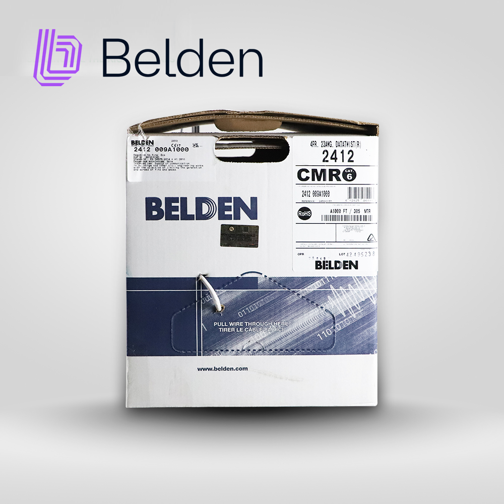 CABLE UTP CAT6+ BELDEN 2412 009A1000 / INTERIOR / BLANCO / 350MHZ / 4 PARES / 23 AWG / FORRO PVC / CMR / CERTIFICABLE / BOBINA EN CAJA / 1,000 PIES 305 METROS