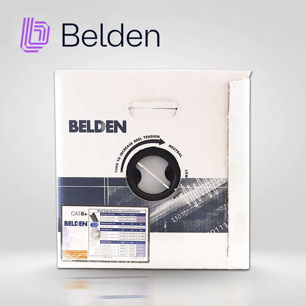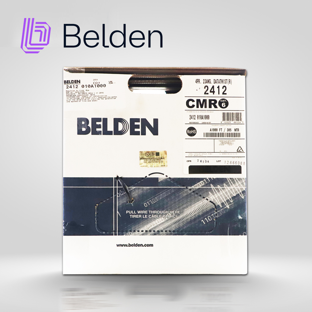 CABLE UTP CAT6+ BELDEN 2412 010A1000 / INTERIOR / NEGRO / 350MHZ / 4 PARES / 23 AWG / FORRO PVC / CMR / CERTIFICABLE / BOBINA EN CAJA / 1,000 PIES 305 METROS