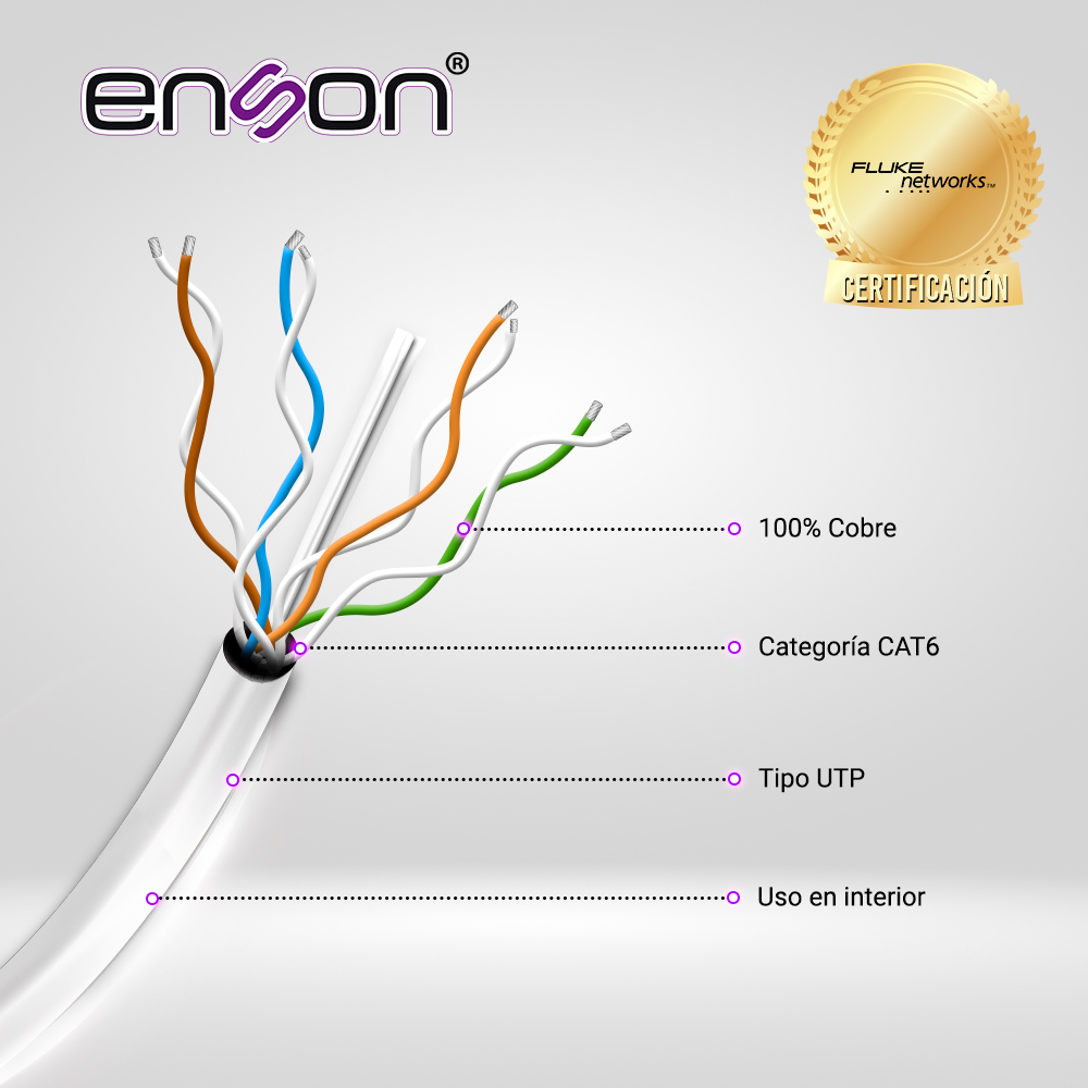 CABLE UTP CAT6 ENSON 12263G305 SERIE PRO-II CALIBE 23 AWG 100% COBRE DE ALTO RENDIMIENTO BOBINA DE 305 METROS FORRO PVC COLOR GRIS USO INTERIOR RECOMENDADO PARA CCTV, VIDEO IP Y REDES BASE 10,100,1000