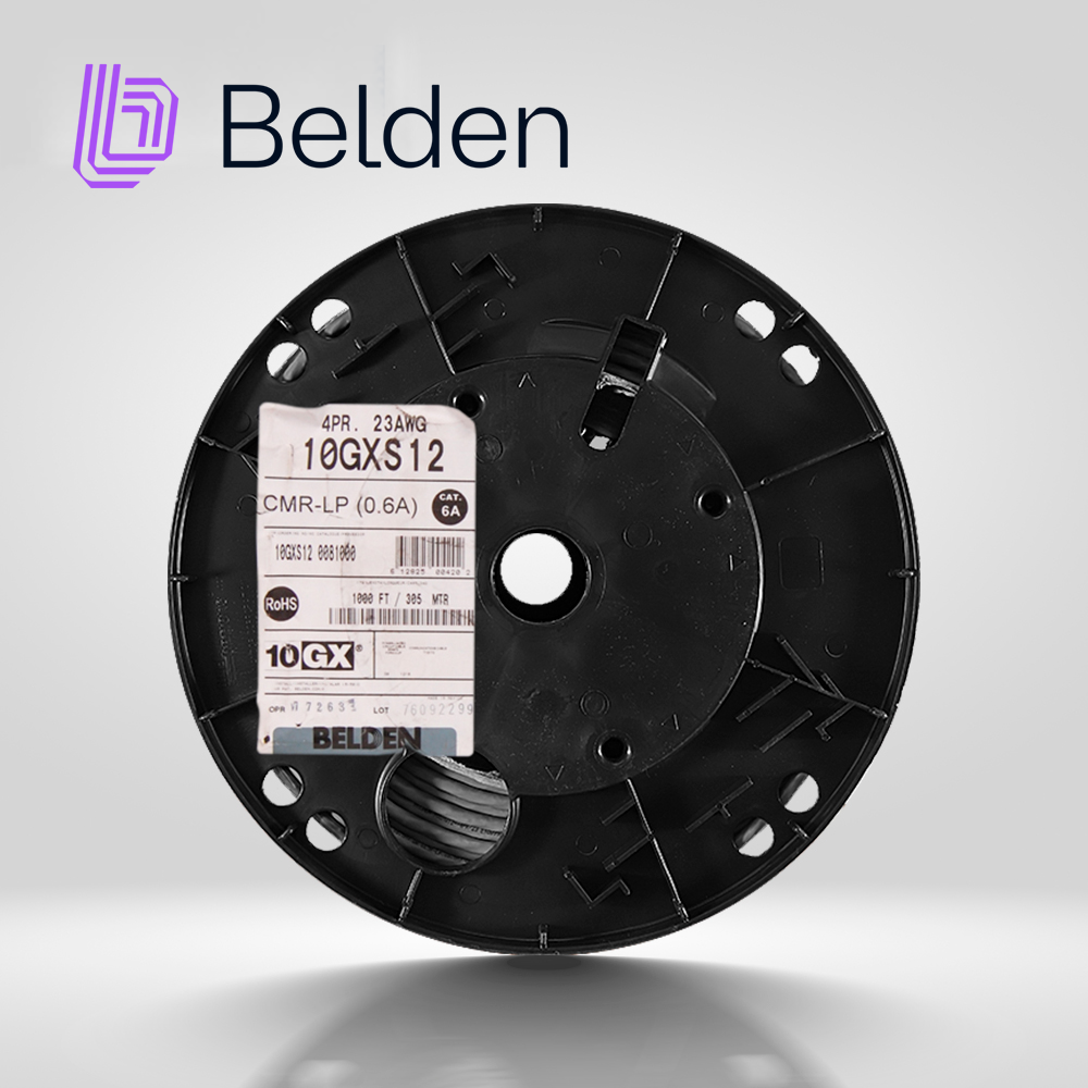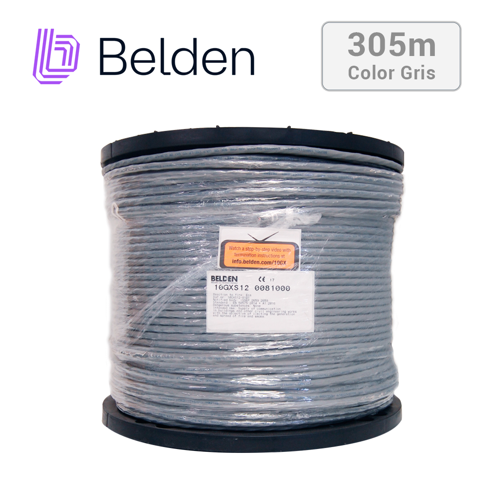 CABLE UTP CAT6A BELDEN 10GXS12 0081000 / INTERIOR / GRIS / 625MHZ / 4 PARES / 23 AWG / FORRO PVC / CMR / CERTIFICABLE / BOBINA / 1,000 PIES 305 METROS