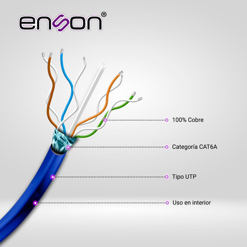 CABLE UTP CAT6A ENSON 12264L305 FORRO PVC AZUL 4 PARES 500MHZ 100 POR CIENTO COBRE USO INTERIOR / 1000 PIES / 305 METROS
