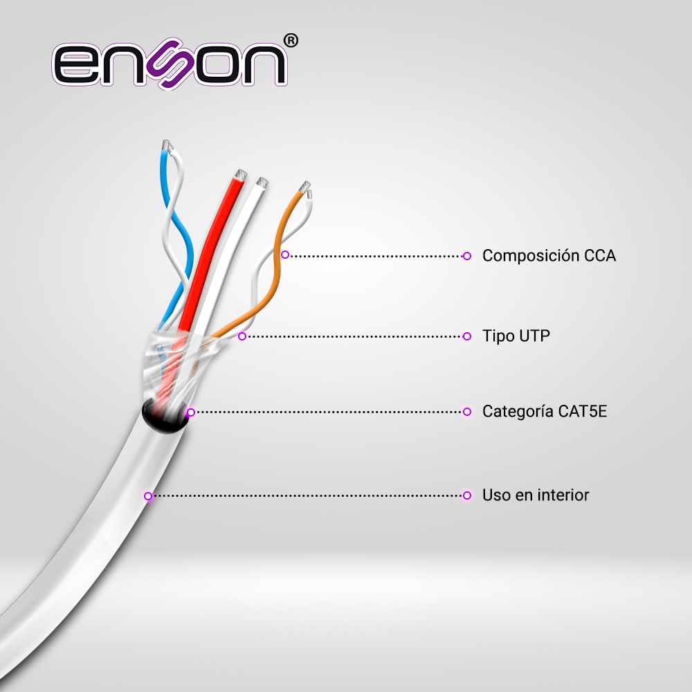 CABLE UTP SIAMES ENSON 52101W250 4C PARA DATOS Y DOS CABLES CALIBRE 18AWG (ROJO Y NEGRO) PARA ALIMENTACIÓN, DISEÑADO PARA SU USO EN SOLUCIONES DE CCTV UNICAMENTE, BOBINA DE 250 METROS COLOR BLANCO PARA SU USO EN EXTERIOR