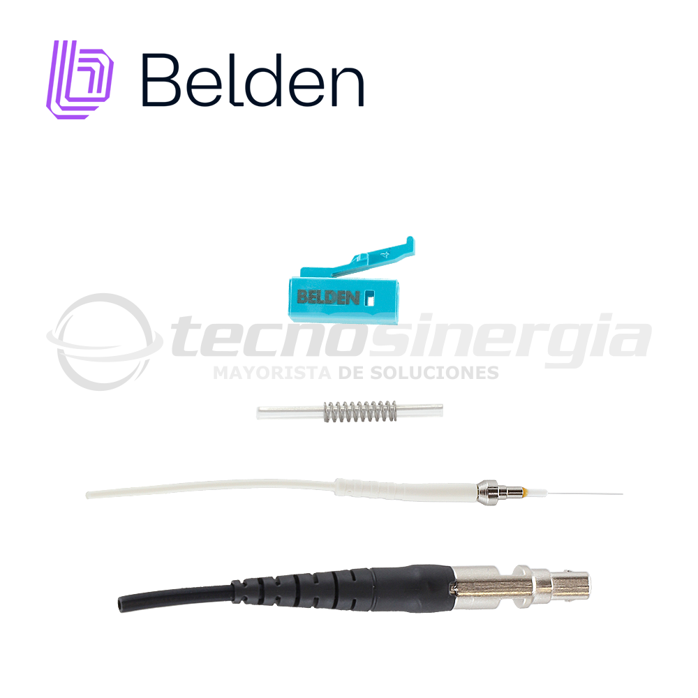 FT3LC900FS01 BELDENConector FX Fusion Splice-On, OM3-4, LC Simplex, 900 micras, color Aqua Espacio ambiental: Interior Aplicaciones adecuadas Terminación en campo de cables de fibra óptica dentro de paneles de conexión, cuadros de distribución, salidas de estación de trabajo para FTTD (fibra al escritorio), caídas para FTTH (fibra al hogar) y MDU (unidades de vivienda múltiple). Tipo de fibra OM3 Estilo de terminación: Empalme Estándares de telecomunicaciones: TIA 568.3-D Embalaje: Un (1) conector por paquete, cada uno en un paquete de concha resistente al polvo y la humedad Partes incluidas Bota de 900 micras, tapa protectora de la férula, funda protectora de empalme Partes relacionadas: Kit de instalación FX Splice-On, FX Pigtails. **Se requiere validar el modelo del holder depende de la fusionadora a utilizar