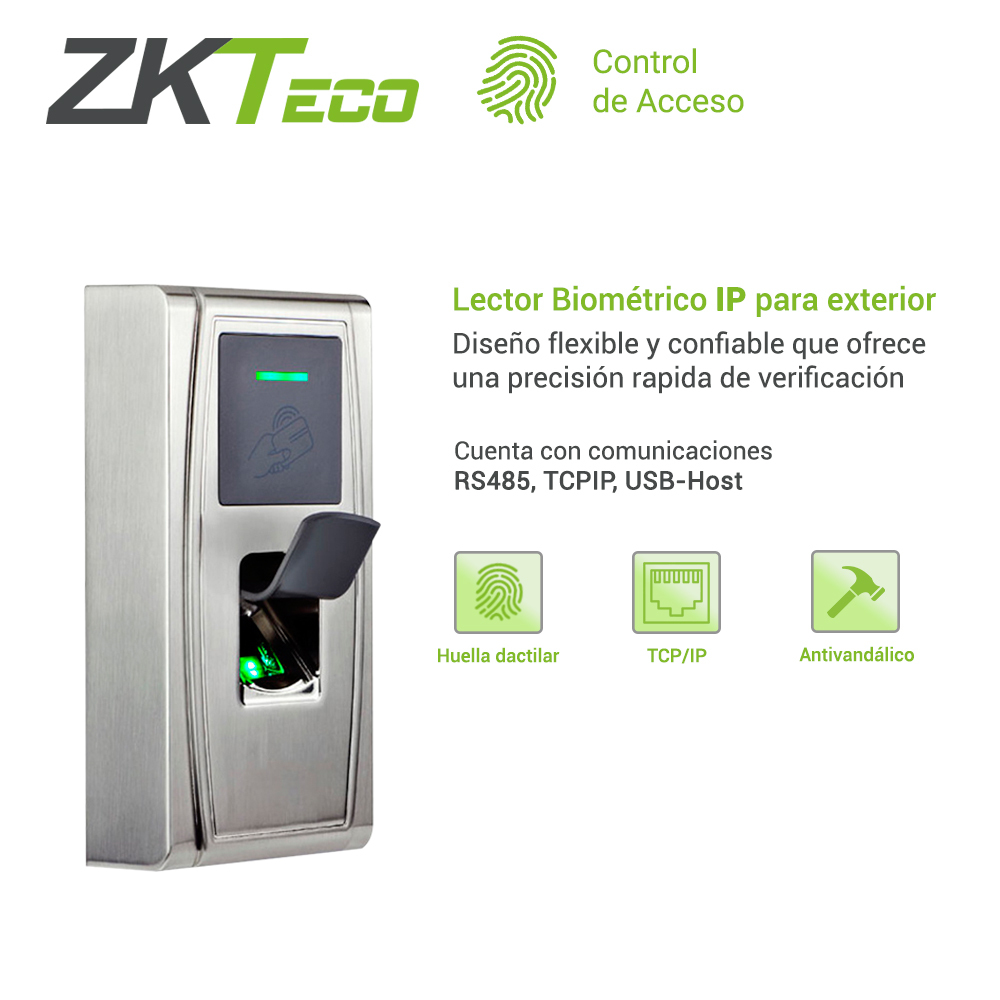 CONTROL DE ACCESO AVANZADO ZKTECO MA300 BIOMETRICO ANTIVANDALICO PARA EXTERIOR CAPACIDAD DE 1500HUELLAS/10,000TARJETAS/100,000REGISTROS TCPIP/RS485/USB HOST COMPATIBLE CON SOFTWARE ZKBIO CV ACCESS