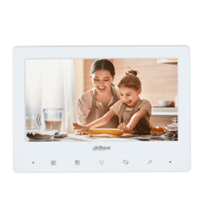 El DHI-VTH1020J de DAHUA es un monitor de videoportero para interiores con pantalla de 7", diseñado para controlar accesos y comunicarse con frentes de calle. Ofrece comunicación bidireccional y es ideal para mejorar la seguridad en entornos residenciales y comerciales.