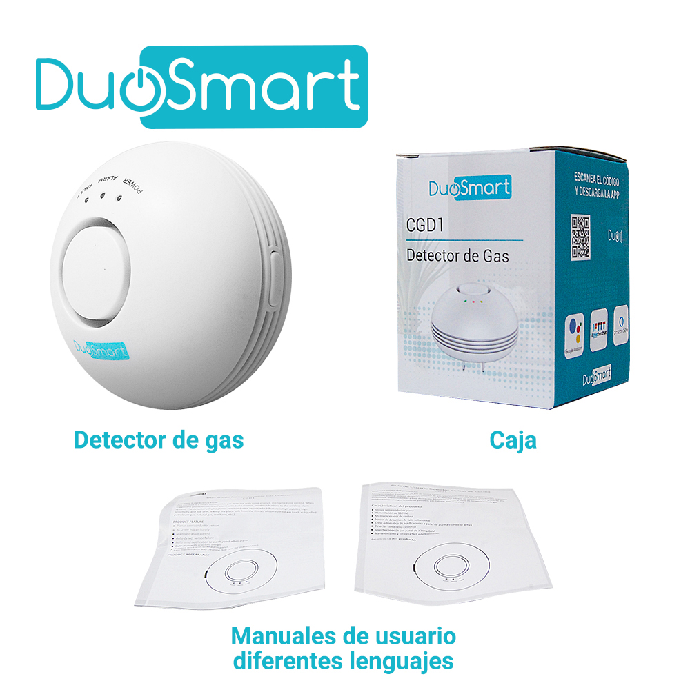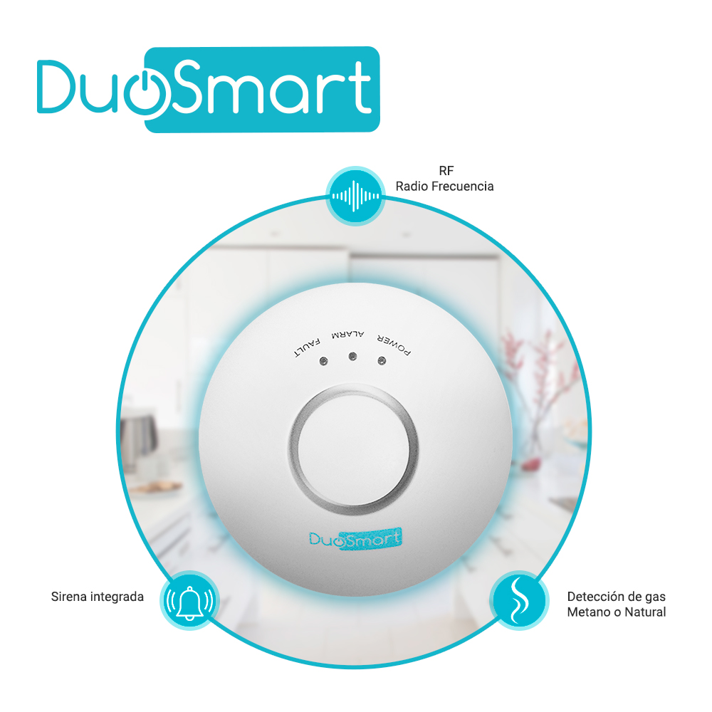 DETECTOR DE GAS RF DUOSMART CGD1 El detector de gas CGD1 es un detector inteligente apto para detección de fugas de gas natural o metano, debe ser monitoreado por un panel de alarma y de esta manera integrarlo a la APP para revisar en el celular o tableta. Cuenta con sirena integrada para alertar de manera local de alguna fuga Simplemente conectalo a un tomacorriente convencional y agregalo a tu panel C10, C20 o C30 incluso la sirena B20 puede recibir sus notificaciones para que seas avisado en tu equipo de manera remota. Características Sirena integrada Detección de gas metano o natural Compatible con Alexa / Asistente de Google Frecuencia 433.92 MHz Alimentación de 110 VCA