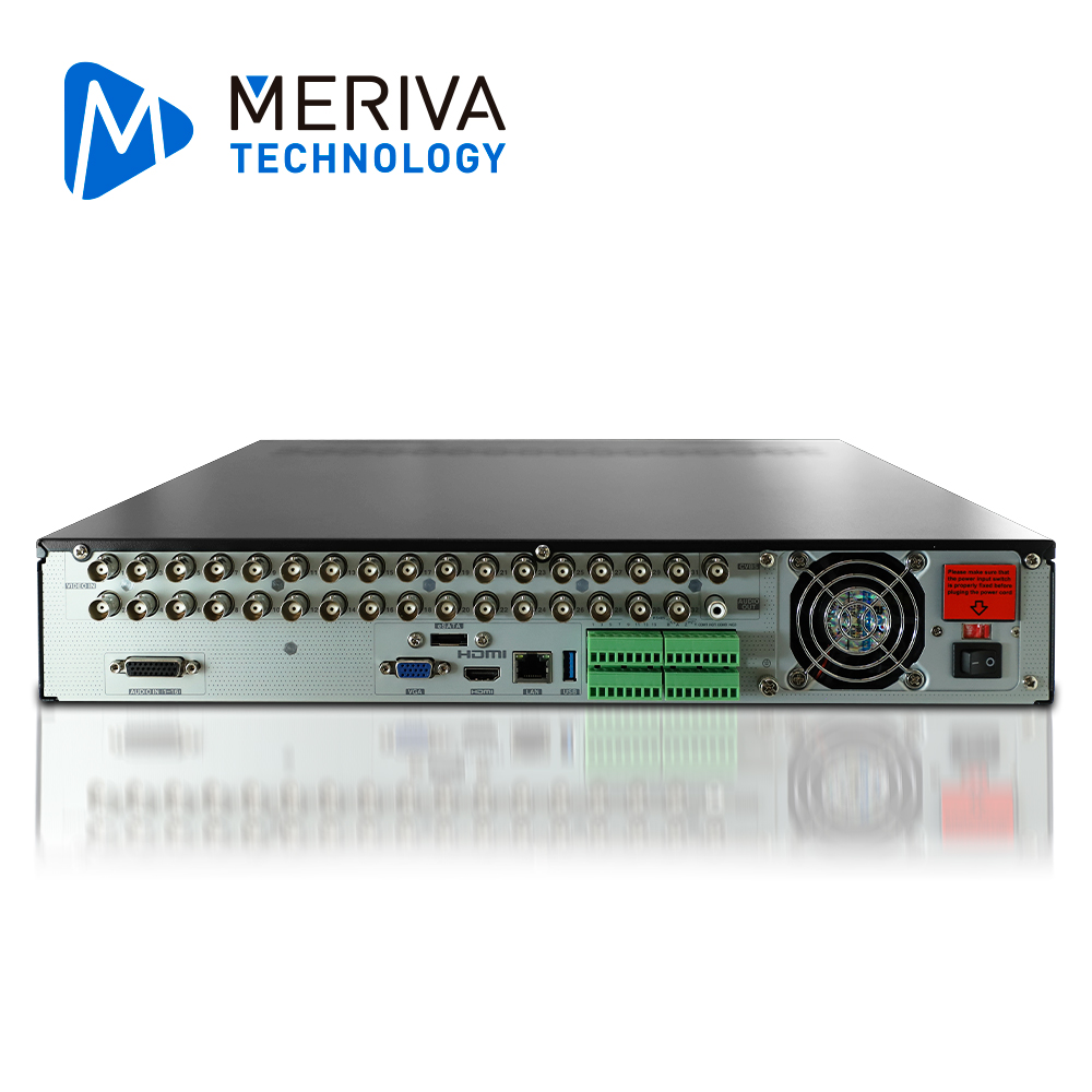 DVR MERIVA TECHNOLOGY MXVR-6432A HD H.265 40 CANALES 5MP PENTA HIBRIDO 32CH BNC / 8CH IP / SALIDA HDMI (1080P) + 1 VGA + 1 BNC SIMULTANEA / AUDIO AOC (AUDIO POR COAXIAL) 32CH BNC + 16 ENTRADAS Y 1 SALIDA RCA / ALARMA 16 ENTRADAS - 4 SALIDA COC / P2P-CLOUD / SO N9000 / AHD-TVI-CVI-960H-IP / 4 HDD