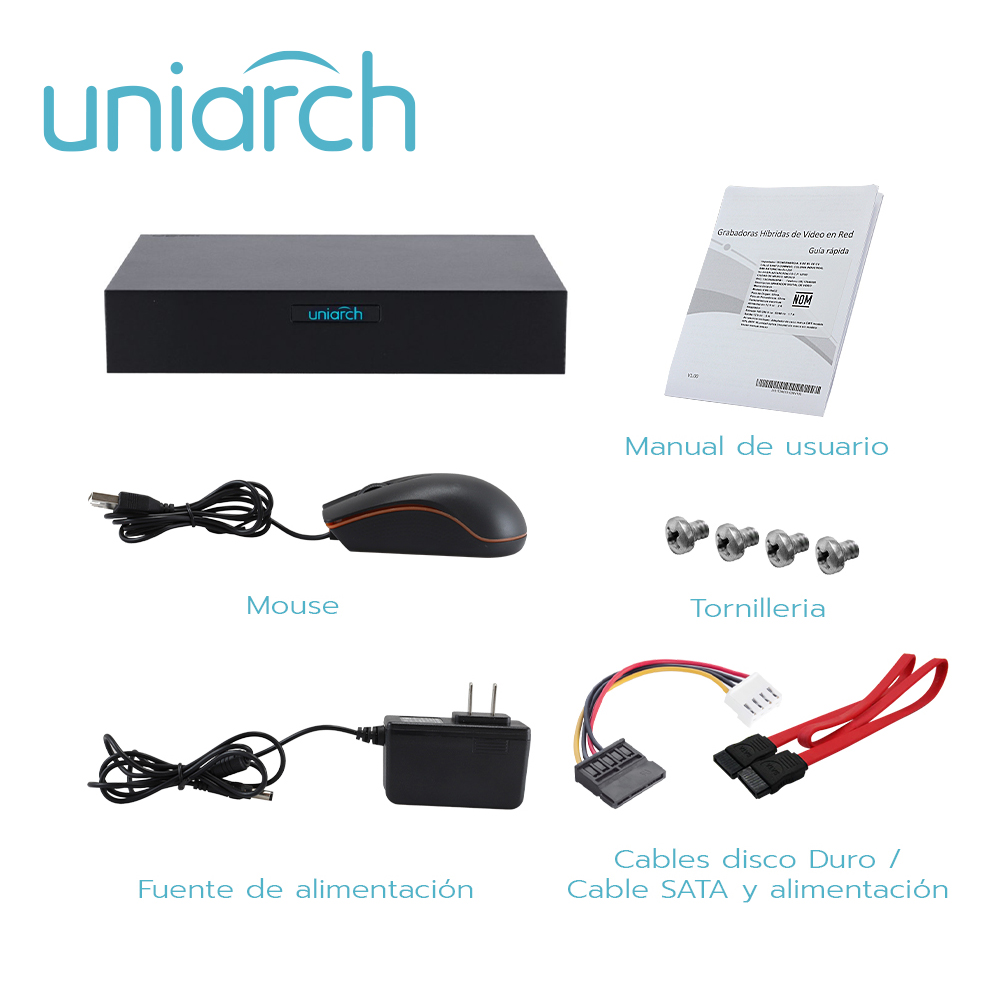 DVR PENTAHIBRIDO UNIARCH XVR-108F / 10 CANALES DE VIDEO / 8 CANALES ANALOGICOS (2 MP LITE) / 2 CANALES IP (6 MP) / SALIDA SIMULTÁNEA HDMI / VGA / 1 DISCO DURO DE 6 TB / 12 VCD / AUDIO SOBRE COAXIAL (SOLO EN TVI)