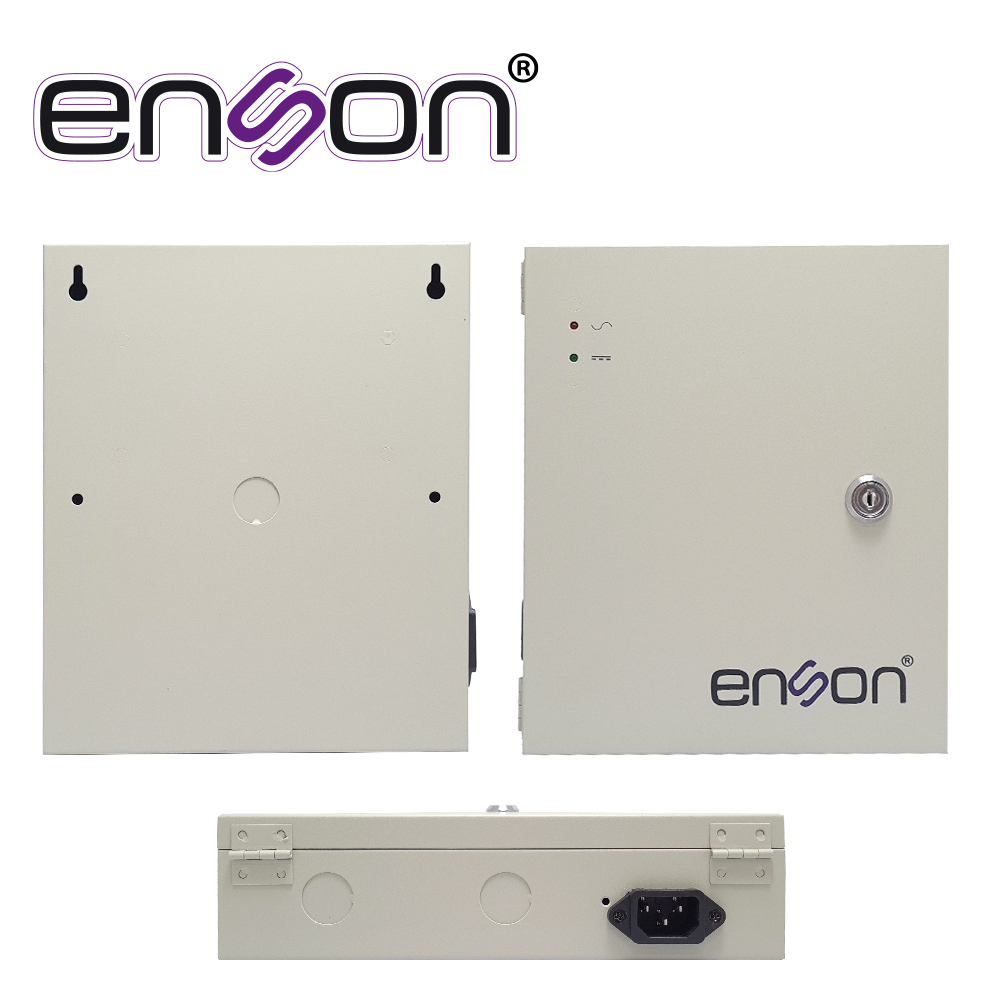 ENSON REG. PSB-1218La fuente de poder ENSON PSB-1218 es una potente fuente de poder de 10Ampers ideal para conectar hasta 18 cámaras o controles de acceso.Cuenta con 18 salidas de corriente con fusibles individuales tipo PTC autorrecuperables, que no requieren ser cambiados o sustituidos ya que al originarse un corto se restablecen de forma automática.