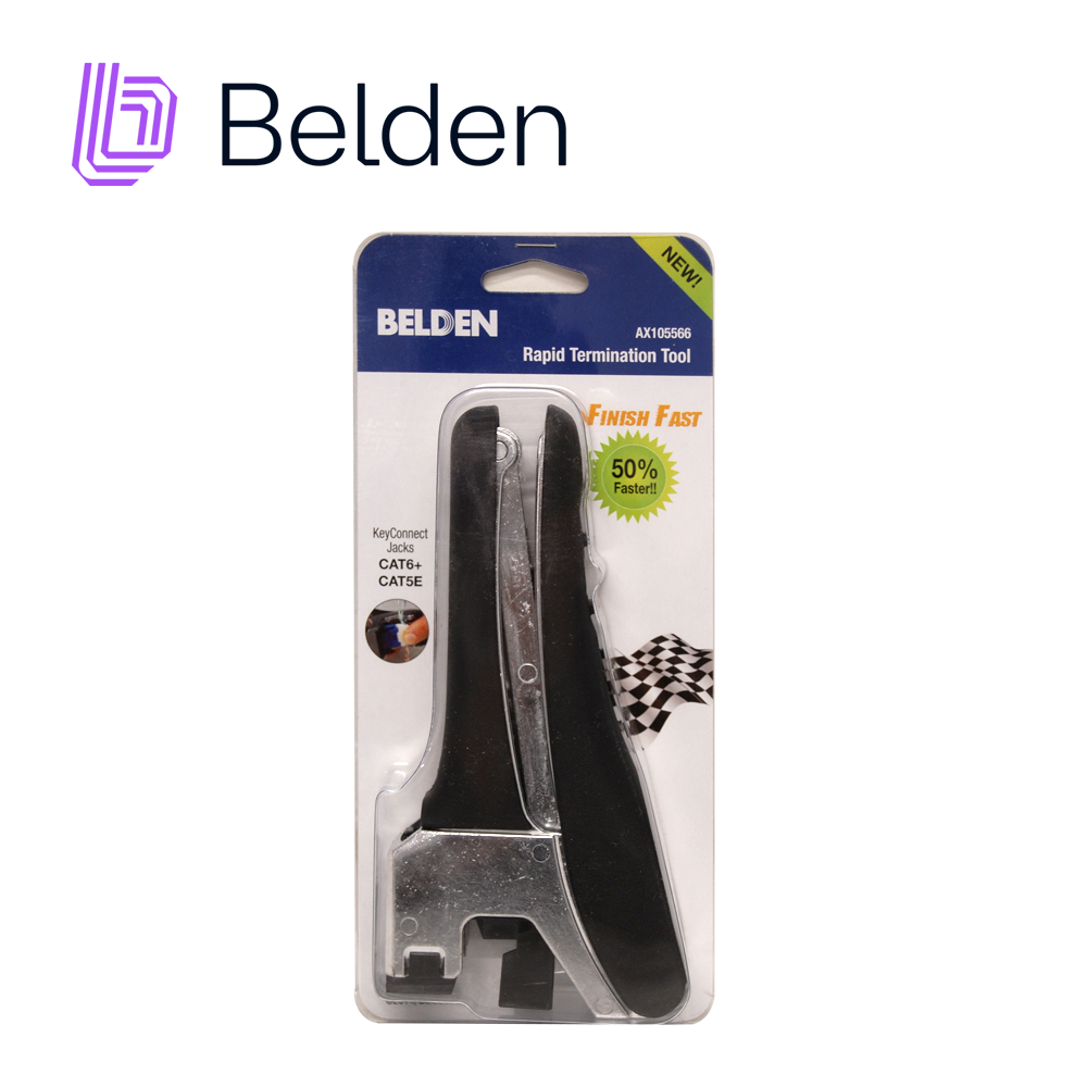 AX105566 BELDEN Pinzas BELDENAX105566de terminación de conectores jack de BELDEN. Ideal para cable trenzado de red CAT5e y CAT6. Agiliza hasta en un 50% el tiempo de terminación de los conectores jack. De fácil manejo y portable.