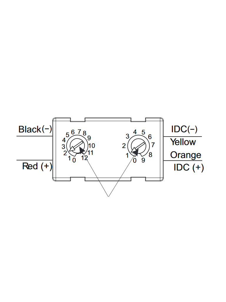 Utilice un destornillador para ajustar los dos interruptores giratorios en la parte frontal del módulo. Configure el interruptor giratorio TENS (0 a 12) para el dígito de las decenas y el interruptor giratorio UNOS para el dígito 0 al 9.