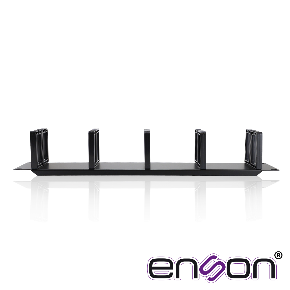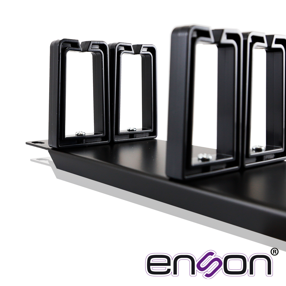 ENS-CMR24 ENSON Organizador horizontal ENSON.ENS-CMR24 Ocupa 2 Unidad de rack Fabricado una placa de metal y anillos de plastico Posición frontal Para racks abiertos o gabinetes de 19" Mayor eficiencia para la organización de cables UTP y fibra óptica Material Ancho exterior490mm Alto exterior 88mm Profundidad exterior100mm