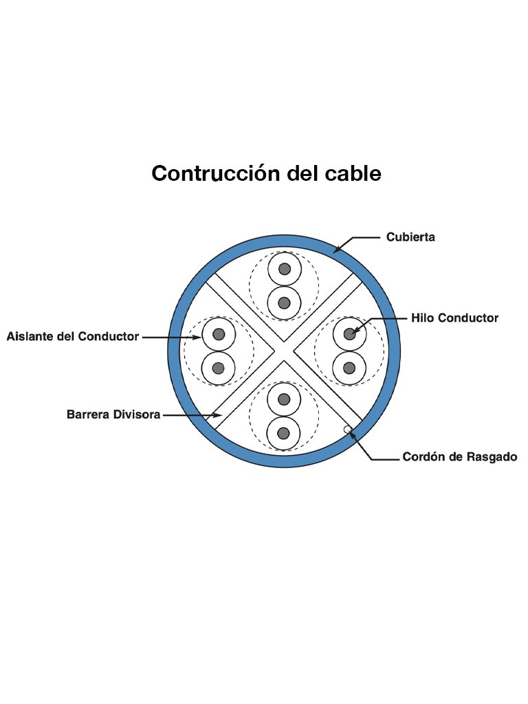 - Conductor: Cobre sólido 24 AWG aislado con polímero HDPE.