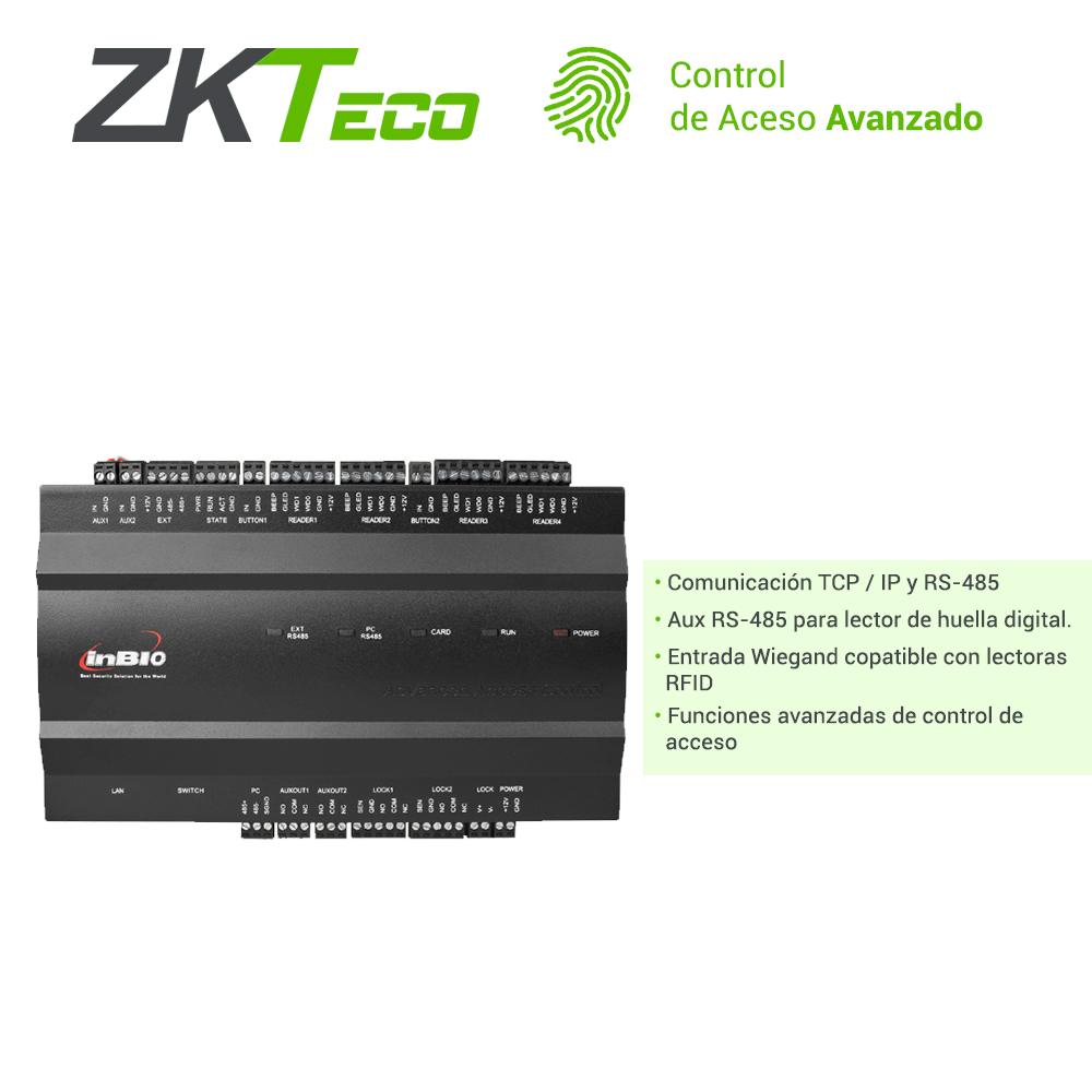 PANEL DE CONTROL DE ACCESO AVANZADO ZKTECO INBIO260 2PUERTAS/4LECTORAS/3000HUELLAS/30,000TARJETAS/100,000REGISTROS TCPIP/RS485/2 INPUT AUX COMPATIBLE CON LECTORAS SERIE KR Y FR SOFTWARE COMPATIBLE SIN COSTO ZKBIO CVACCESS