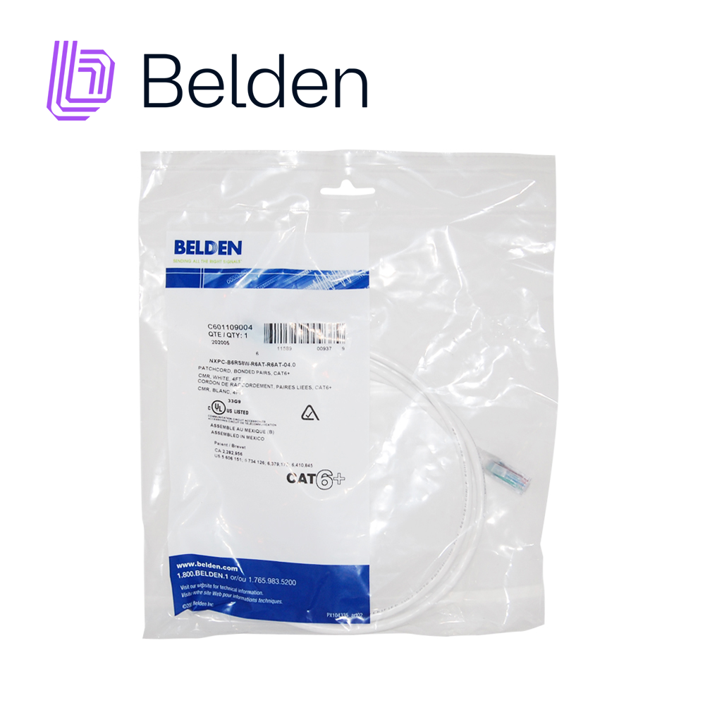 PATCH CORD UTP CAT6+ BELDEN C601109004 / INTERIOR / BLANCO / 4 PARES / 24 AWG / FORRO PVC / CMR / 4 PIES 1.2 METROS