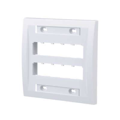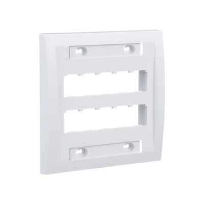 Las placas frontales están disponibles en 1, 2, 4 y 6 puertos de una sola banda y 10 puertos de doble banda con etiqueta y cubierta de etiqueta para una fácil identificación. Cada placa frontal acepta módulos Mini-Com® para UTP, STP, fibra óptica y audio/video que se conectan y desconectan. Las placas frontales de la serie ejecutiva tienen un perfil elevado para una apariencia estética.