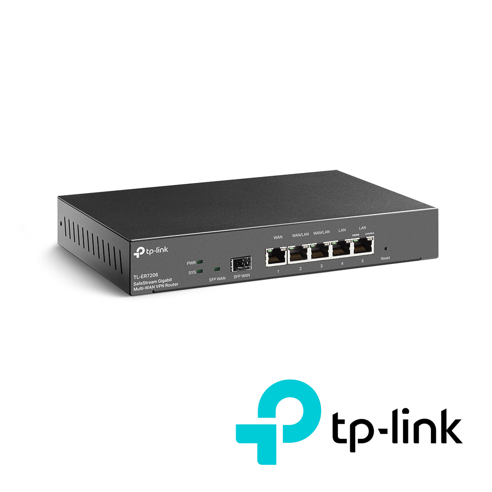 ROUTER VPN TP-LINK TL-ER7206 INTEGRADO EN OMADA SDN, ADMINISTRACIÓN CENTRALIZADA, 1 PUERTO WAN FIBRA ÓPTICA SFP GIGABIT, 1 PUERTO WAN GIGABIT FIJO, 2 PUERTOS LAN GIGABIT RJ45 FIJO, 2 PUERTOS GIGABIT WAN/LAN INTERCAMBIABLES BALANCEO DE CARGA