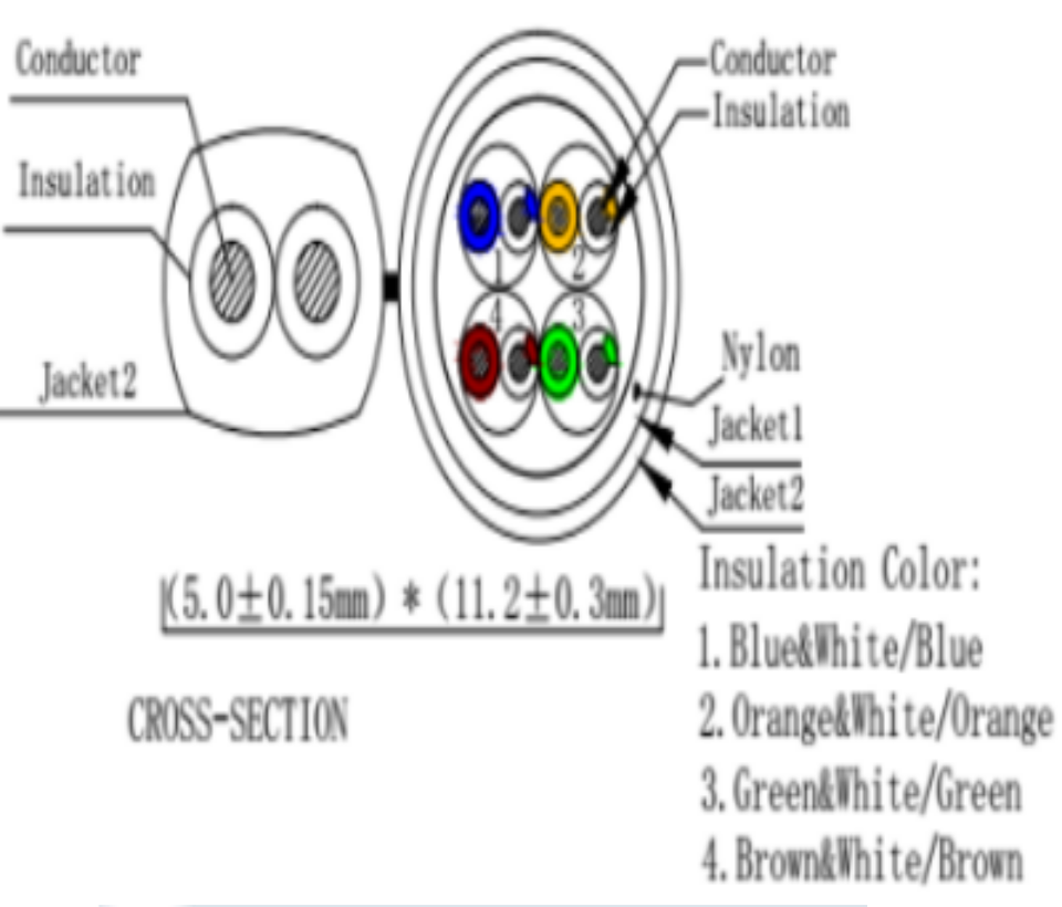 Cuenta con impedancia: 100 ± 15% Ω y una frecuencia de 100MHZ. El ancho de banda efectivo de la capa de datos es 1Git / s.