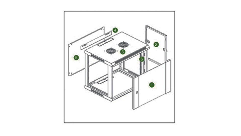 - Gabinete con apertura frontal y lateral: Su diseño cuenta con un sistema de puertas y paneles removibles que simplifica su instalación y lo hace ideal para hacer revisiones ocasionales o frecuentes sin necesidad de desmontarlo.