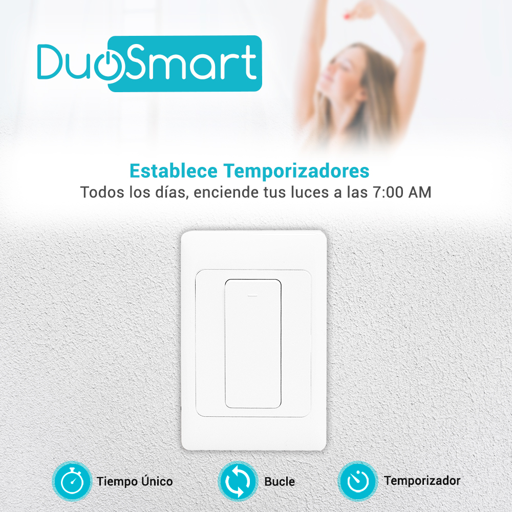 WiFi 2.4 GHz Interruptor Físico Indicador Led de Estado Compatible con Asistentes Virtuales Control por app Duosmart Comparte el Control Creación de Escenarios Temporizadores
