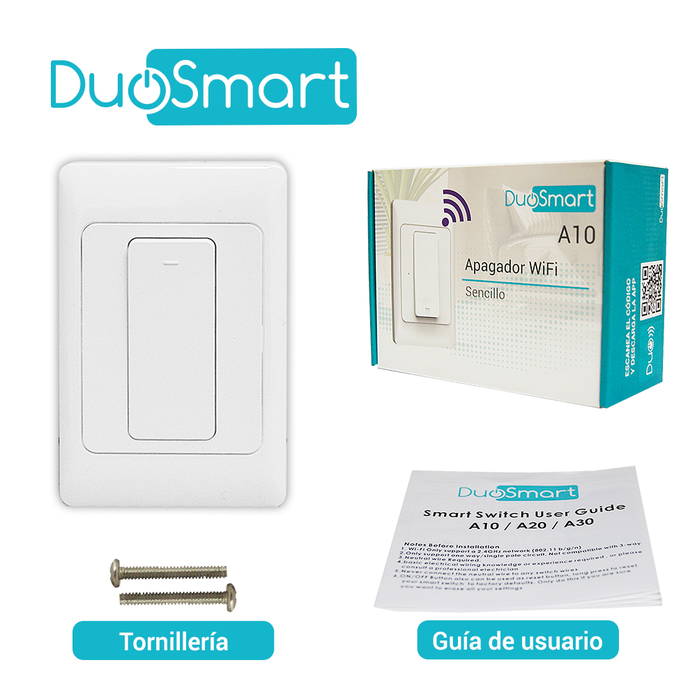 SWITCH APAGADOR WIFI 2.4 GHZ DUOSMART A10 DE 1 UNIDAD COMPATIBLE CON ALEXA Y GOOGLE HOME CON TEMPORIZADORES COMPATIBLE CON ESCENAS DE AUTOMATIZACION EN CONJUNTO CON OTROS DISPOSITIVOS
