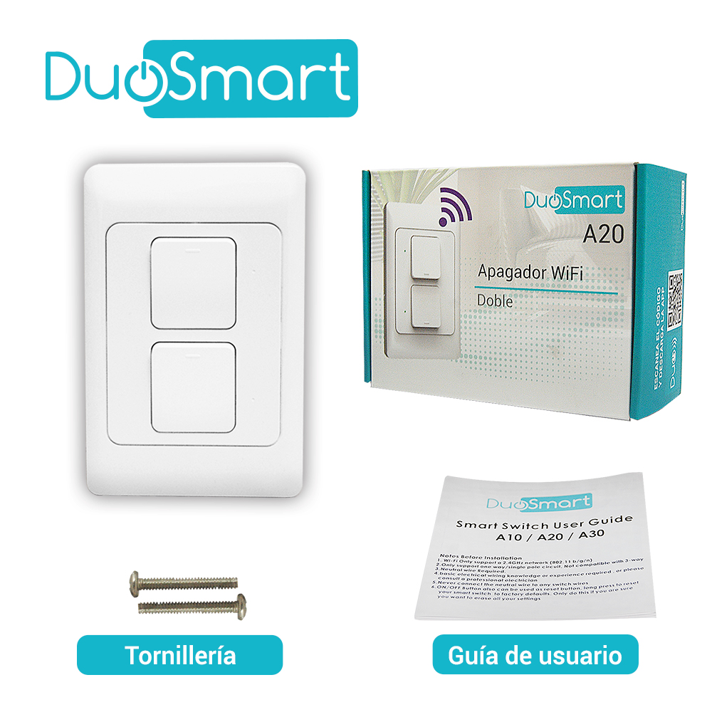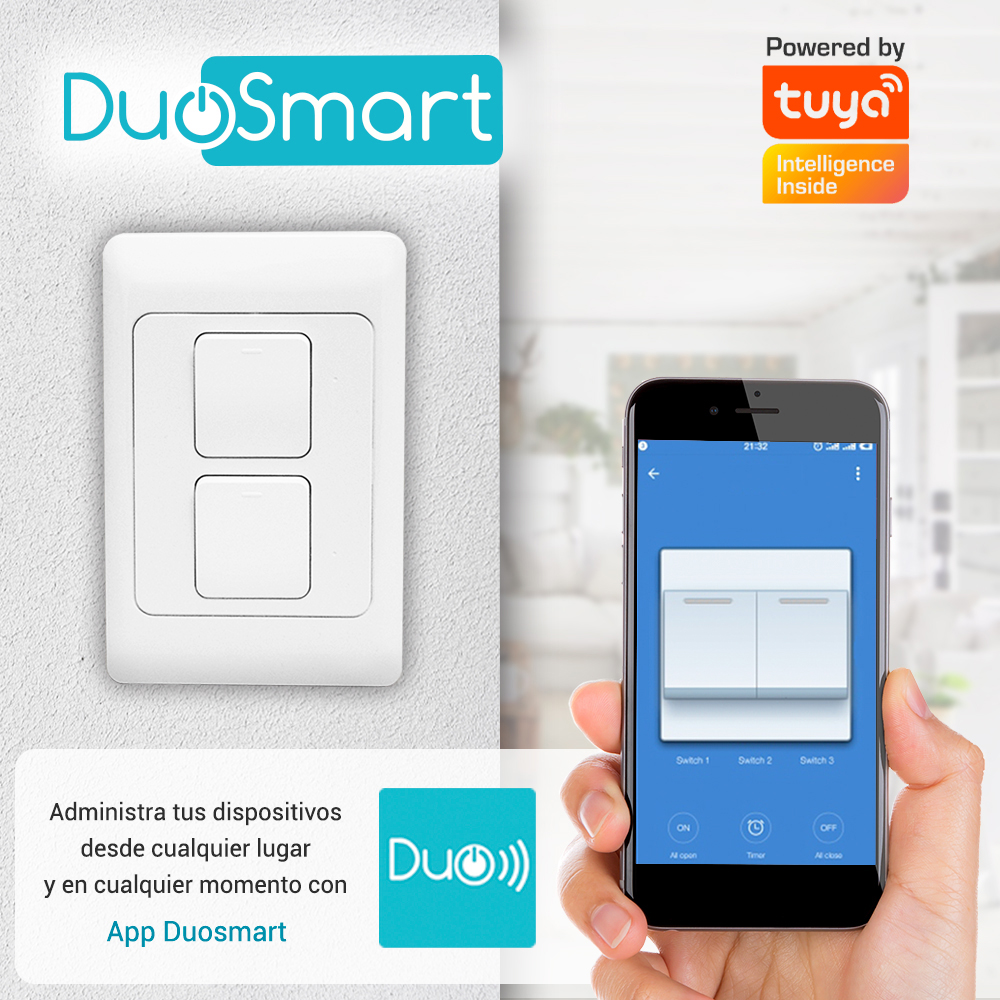 WiFi 2.4 GHz Interruptor Físico Indicador Led de Estado Compatible con Asistentes Virtuales Control por app Duosmart Comparte el Control Creación de Escenarios Temporizadores