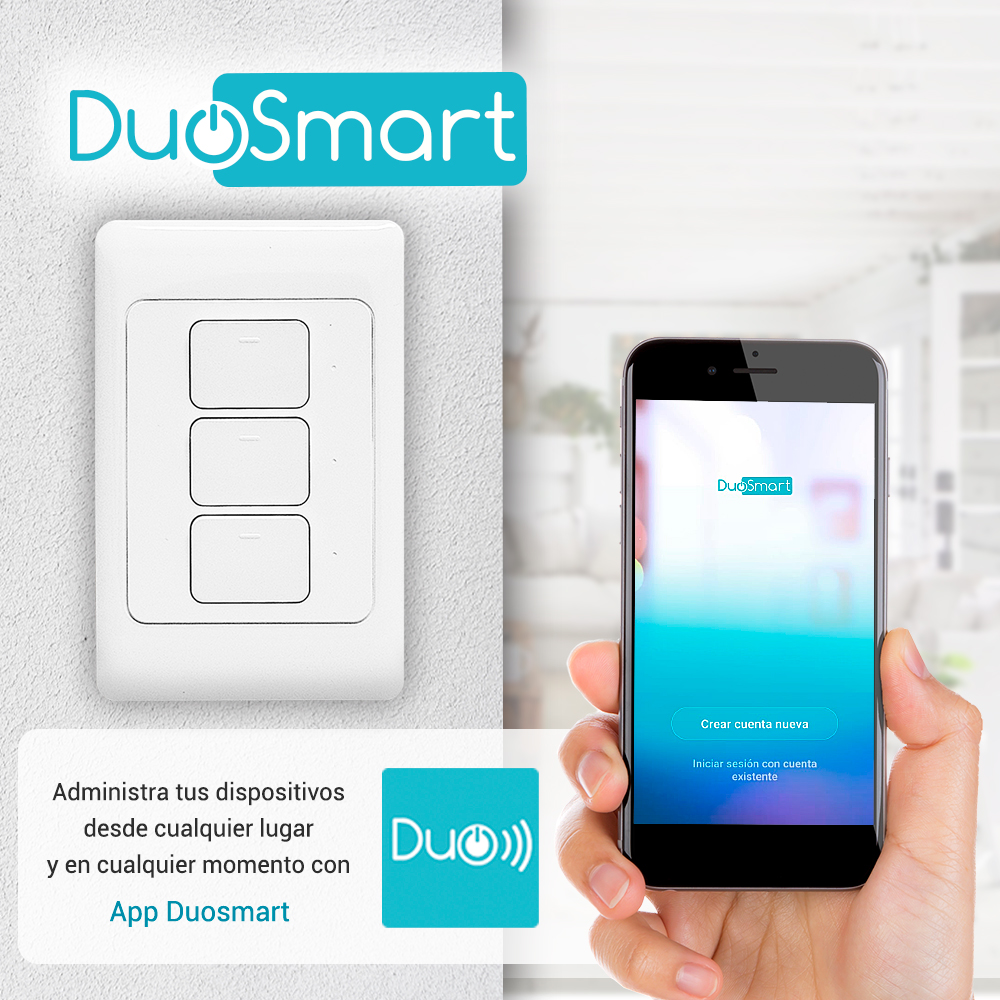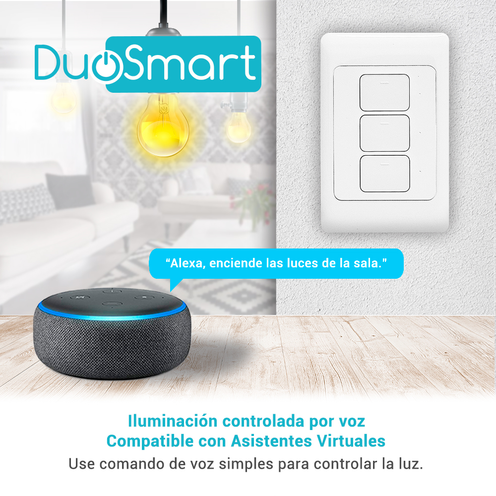 WiFi 2.4 GHz Interruptor Físico Indicador Led de Estado Compatible con Asistentes Virtuales Control por app Duosmart Comparte el Control Creación de Escenarios Temporizadores