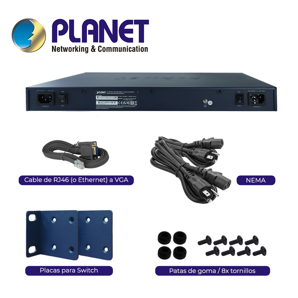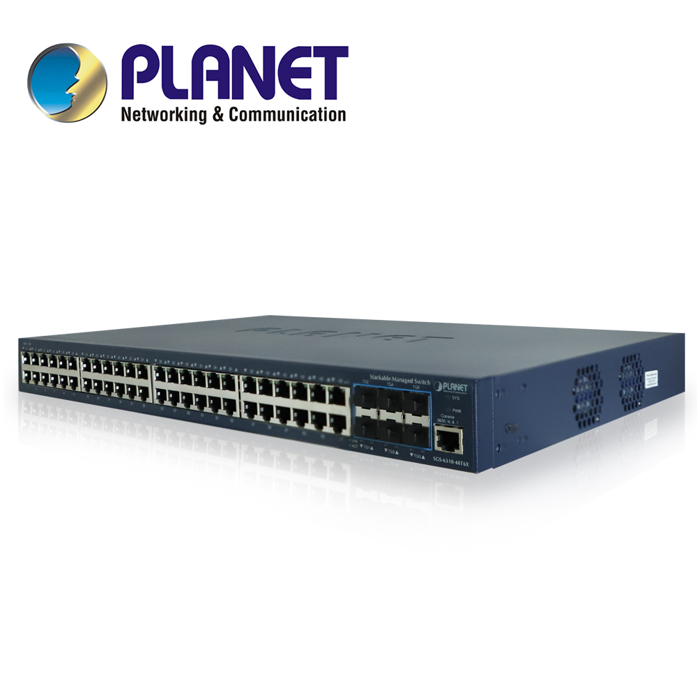 SWITCH PLANET STACKING SGS-6310-48T6X ADMINISTRABLE L2 + L3 RUTEO ESTATICO/ 48 PUERTOS RJ45 VELOCIDAD DE TRANSMISION 10/100/1000 MBPS + 6 SFP VELOCIDAD DE TRANSMISION 10 GB MONTAJE EN RACK/TEMPERATURA DE OPERACION 0-50 GRADOS CENTIGRADOS.