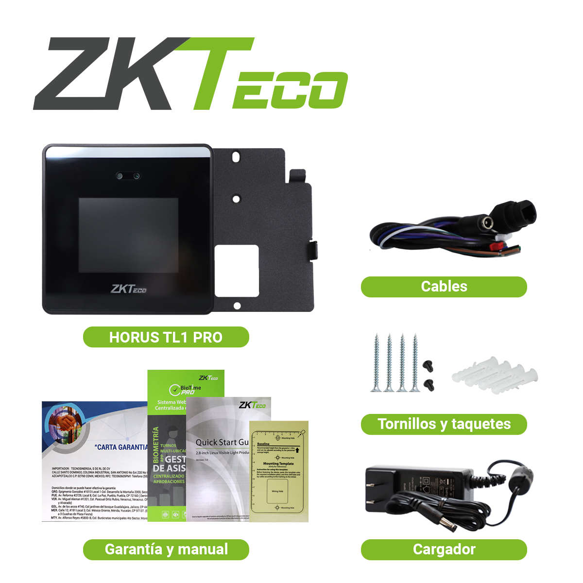 TERMINAL DE ASISTENCIA CON RECONOCIMIENTO FACIAL VISIBLE LIGHT ZKTECO HORUS TL1 PRO CAPACIDAD DE 800 ROSTROS 100, 000 EVENTOS COMUNICACIÓN WIFI TCP/IP EQUIPADO CON SALIDA DE RELEVADOR COMPATIBLE CON BIOTIMEPRO