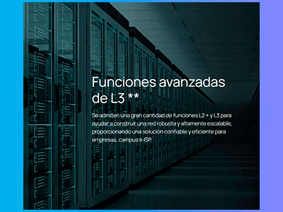 - VLAN, ACL, QoS, vigilancia IGMP, OAM y DDM