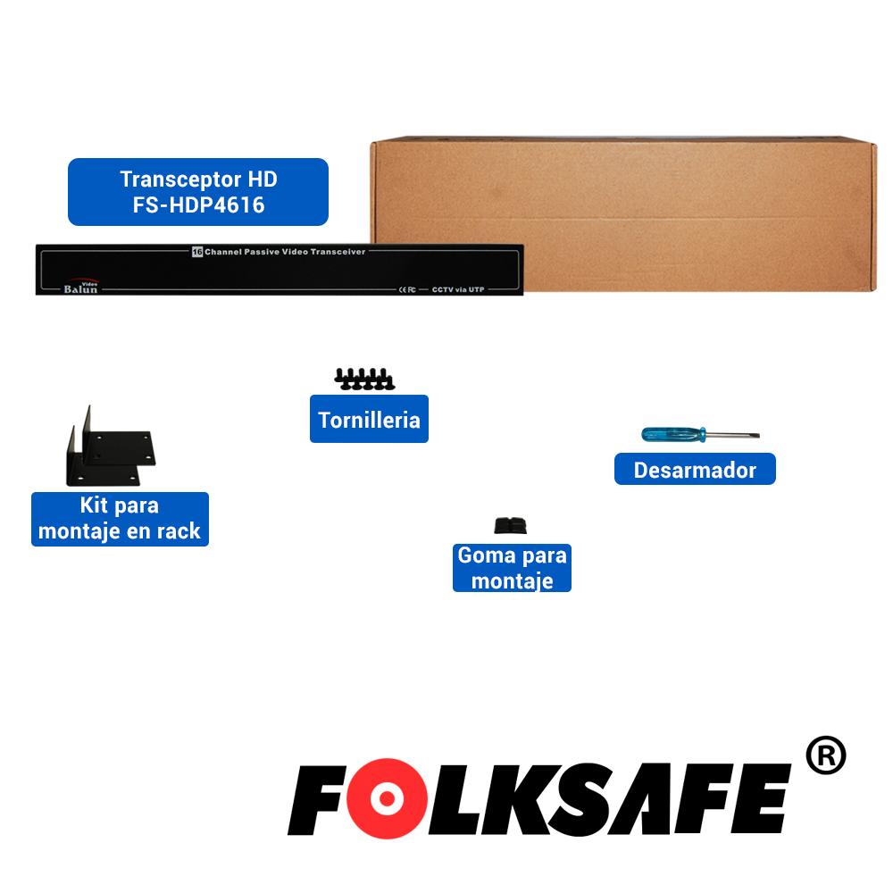 TRANSCEPTOR DE VIDEO PASIVO, HUB 16 CANALES HD FOLKSAFE FS-HDP4616, COMPATIBLE CON TODAS LAS MARCAS DE CÁMARAS CON FORMATO HD-CVI, HD-TVI Y AHD, DISTANCIA MÁxIMA DE 320MTS DE CABLEADO PARA VIDEO AHD 1.3MP, CUENTA CON PROTECCIÓN DE DESCARGAS DE 2KV EN ENTRADA/SALIDA DE VIDEO.