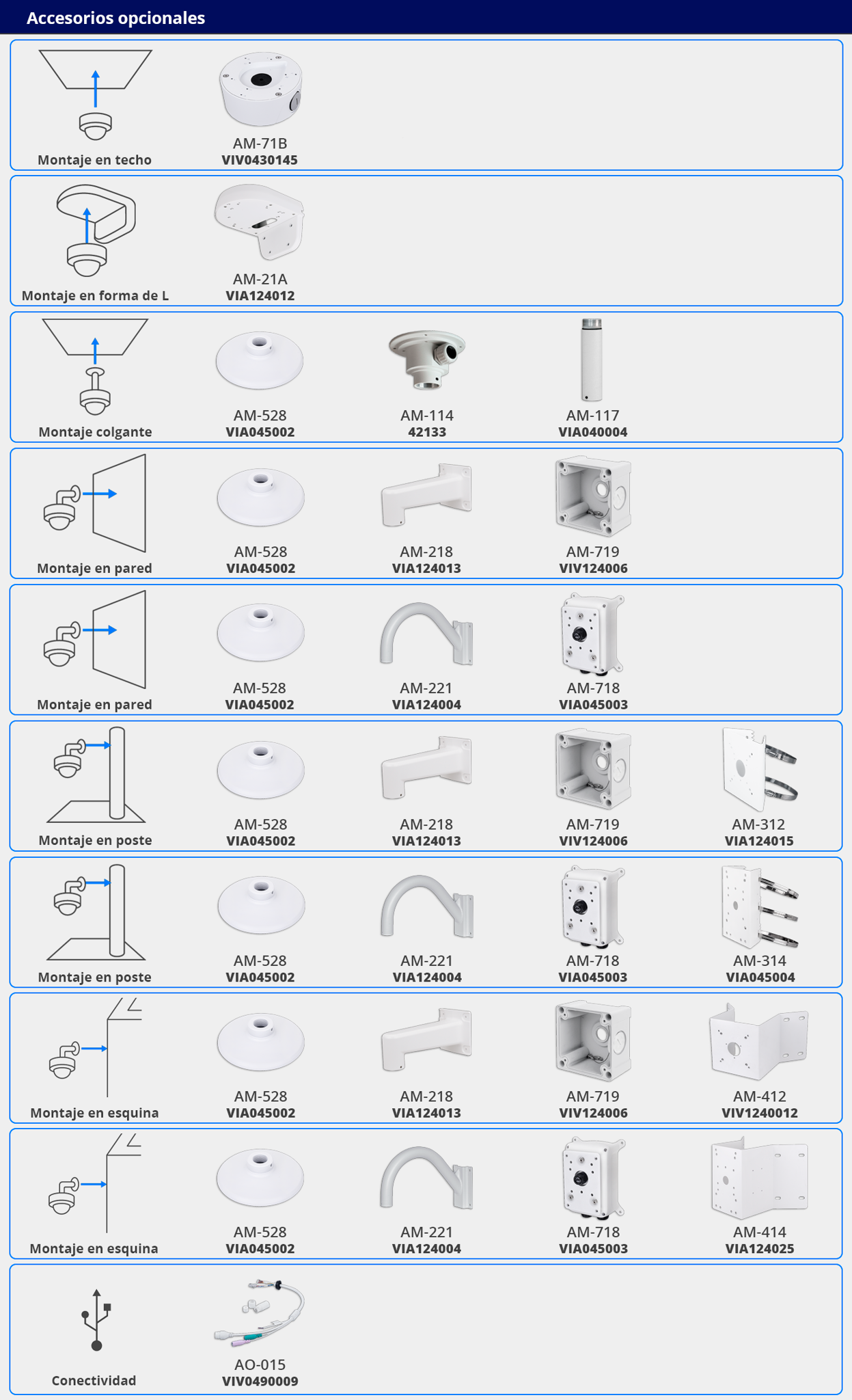 - Capacidad de audio: Audio de dos vías (Full duplex) * Requiere cable AO-015