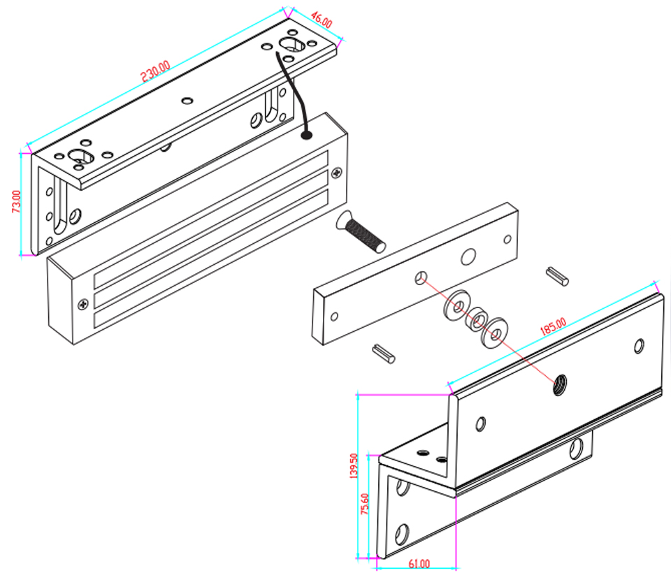 Esta pieza, la cual es fabricada con aluminio de alta resistencia sirve para anclar la chapa magnética modelo:MBK-500NZLW brindándole un fuerte soporte al electroimán. Está compuesta de dos partes, las cuales deben ir posicionadas hacia el interior de la puerta. Compatible con YM500NW