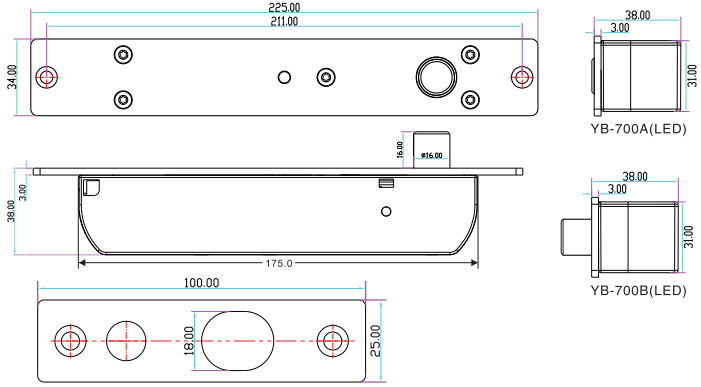YB-700A (LED) es una cerradura de embutir eléctrica inteligente reforzada totalmente de metal. La lengüeta de la cerradura está hecha de una barra sólida de acero inoxidable 304. Está hecha con torno CNC. Puede soportar un impacto de 2000 kg. Todas las partes conectadas están hechas de metal. Estructura, se puede usar normalmente en el ambiente hostil de 60 ℃ de alta temperatura y menos 40 ℃, válvula solenoide profesional y duradera, control fotoeléctrico especial de temperatura ultrabaja y diseño de consumo de energía muy bajo, circuito anti-intrusión y diseño de circuito lógico inteligente Integrado, es un producto óptimo que puede instalar y usar efectivamente puertas y lugares pesados con requisitos de seguridad particularmente altos.