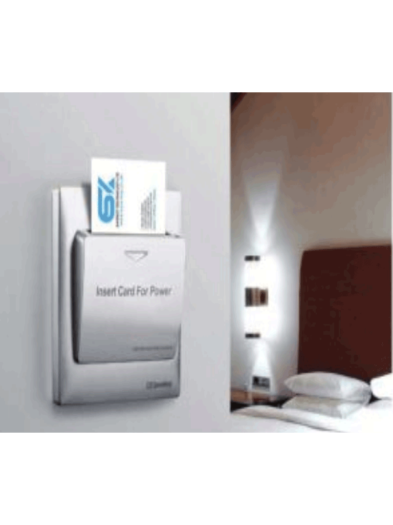 Este módulo nos ayuda al ahorro de energía y a controlar el acceso al uso de la energía de una habitación de un hotel o departamento. Regularmente, se instala cercano a la puerta de su habitación en el interior.
